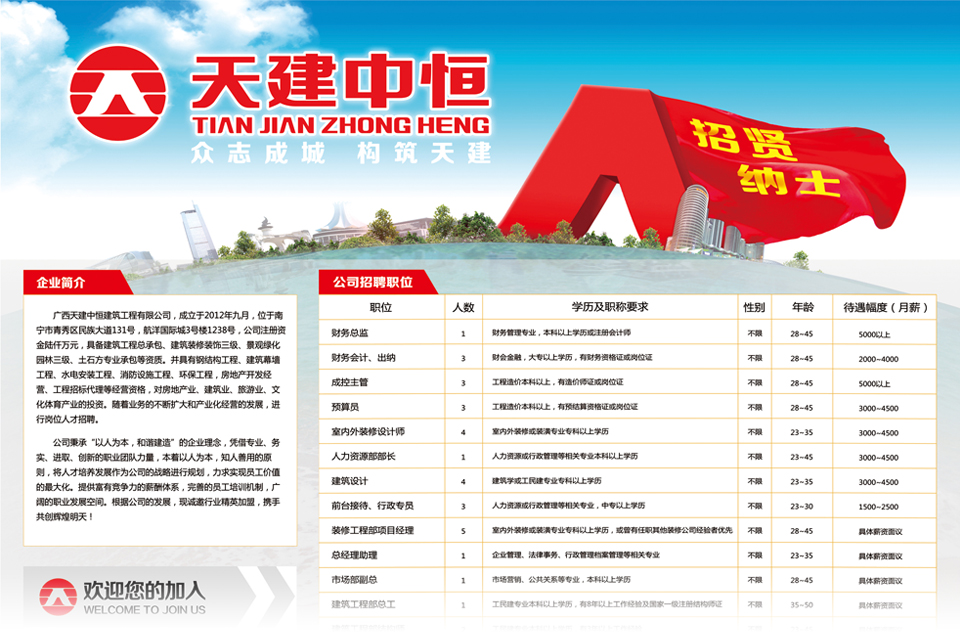 廣西天建中恒實業集團有限公司前身為廣西天建中恒建筑工程有限公司,2010年籌措與創建;經過幾年的沉淀與發展,于2015年變更注冊成為一家多元化實業發展集團,旗下設立了多家子公司,分別從事金融與投資、建筑與房開、環保與評估、設計與傳媒,并與多家集團公司合作設立分公司及戰略業務合作。